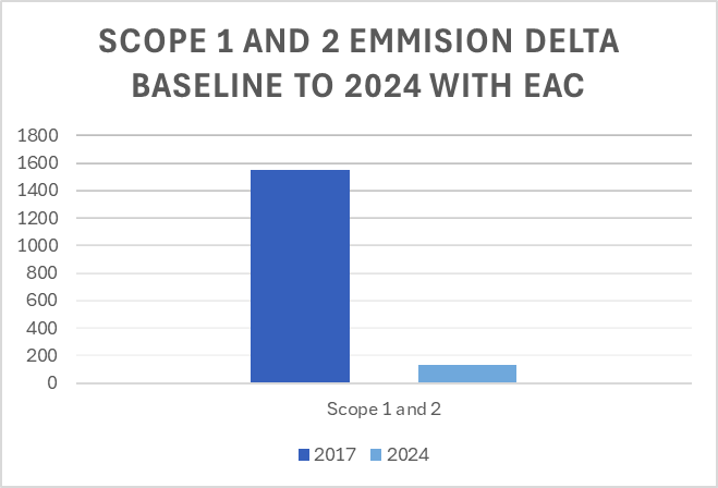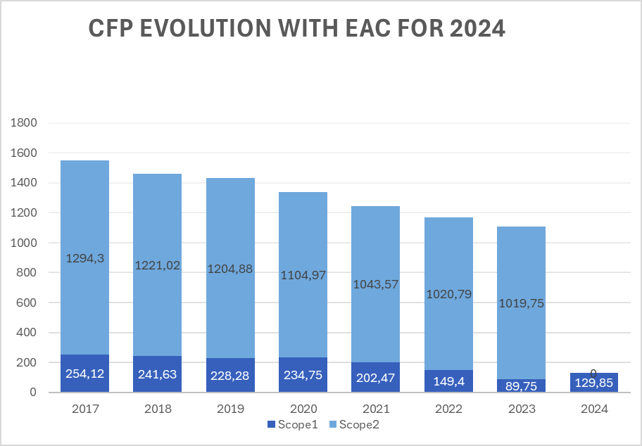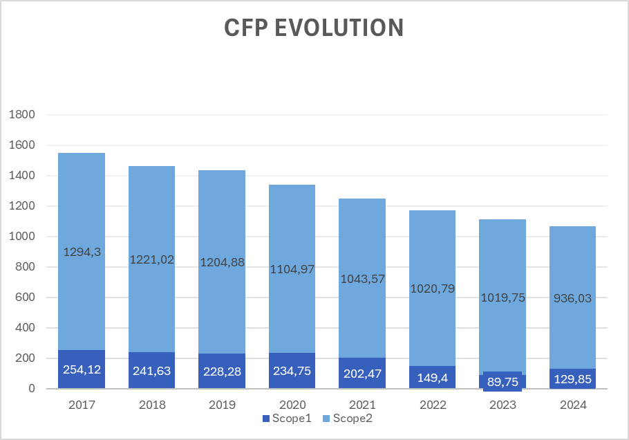 Over the past 8 years, we have reduced our carbon footprint by 31,2% through concrete internal measures, aiming for a 50% reduction by 2025—all while achieving two digit business growth. In 2025, we reached Scope 2 neutrality by purchasing Energy Attribute Certificates (EACs)—proof that an equivalent amount of energy was sourced from renewables, even if the actual electricity used was not green. This brought our reported carbon footprint reduction to 91,62% (in absolute value) and 92,31% (in intensity per unit of sales). While this step supports our formal targets, we are especially proud of the measurable impact of our real operational improvements, particularly given that we achieved them in parallel with continuous company growth.